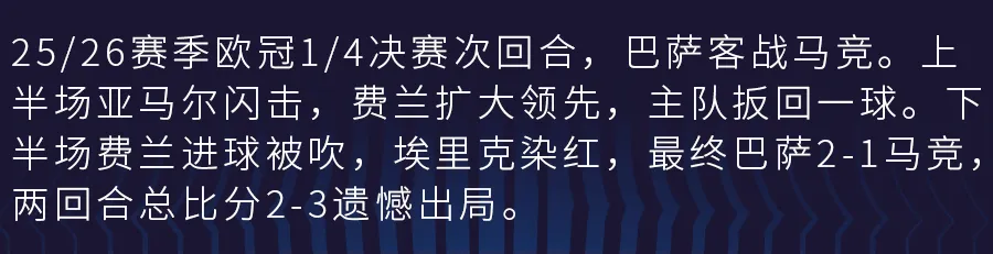 全场比赛结束,巴萨2-1马竞,两回合总比分2-3不敌对手,结束本赛季欧冠征程。下赛季我们继续!