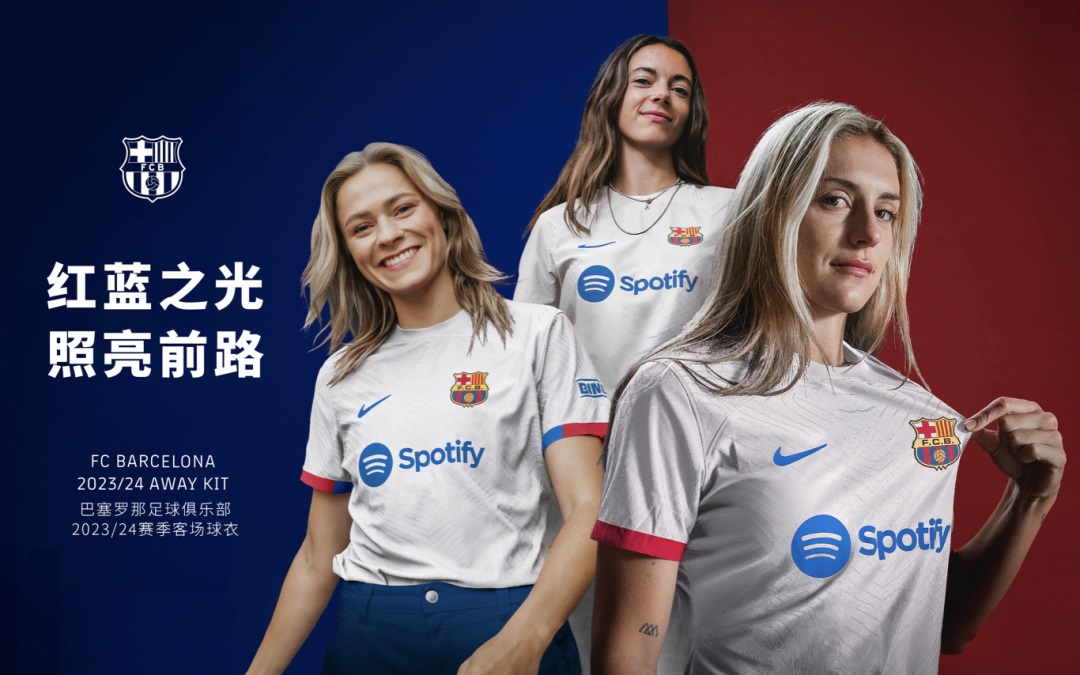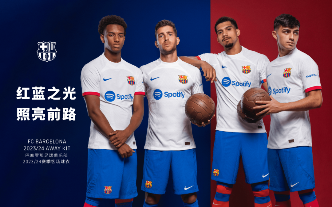 这一球衣设计与巴萨此前推出的新赛季主场球衣如出一辙,后者以1970年巴萨女足在Spotify诺坎普球场进行的首场女子足球比赛为灵感,向女足先驱精神致敬,而新款的客场球衣则是受克鲁伊夫这位俱乐部先驱启发。两件球衣均围绕“红蓝之光,照亮前路”的概念设计,强调了正是其先驱精神使巴萨与众不同,而如数位巴萨队史的先驱们一般,巴萨的年轻人们将在未来继续照亮前路。即日起,新款球衣将在俱乐部官方电商平台、各大线下巴萨商店¹及特许经营商店²公开发售。全新客场球衣以白色为主色调,但这并不是巴萨首次推出白色球衣。早在20世纪20年代到70年代间,像阿尔坎塔拉(Alcántara)、萨米蒂尔(Samitier)、塞萨尔(César)和库巴拉(Kubala)等球员就曾身披白色战袍出战。作为巴萨比赛风格的奠基者,克鲁伊夫也曾在多场比赛中身穿白色球衣,包括他以队长身份率领巴萨出战的1978年3月1日对阵阿斯顿维拉的欧洲联盟杯比赛。此外,球衣在袖口处还设计有红蓝条纹装饰,并且使用了俱乐部在1978年使用的经典队徽。白色球衣搭配蓝色短裤和红蓝条纹袜子,正面采用男队和女队的主要合作伙伴Spotify标志,并印有耐克标志。男足和女足一线队球衣袖口则将分别呈现Ambilight TV(飞利浦环景光电视)和Bimbo(宾堡)的品牌标志。此外,联合国难民署(UNHCR/ACNUR)的标志将再次印在球衣背号的上方。