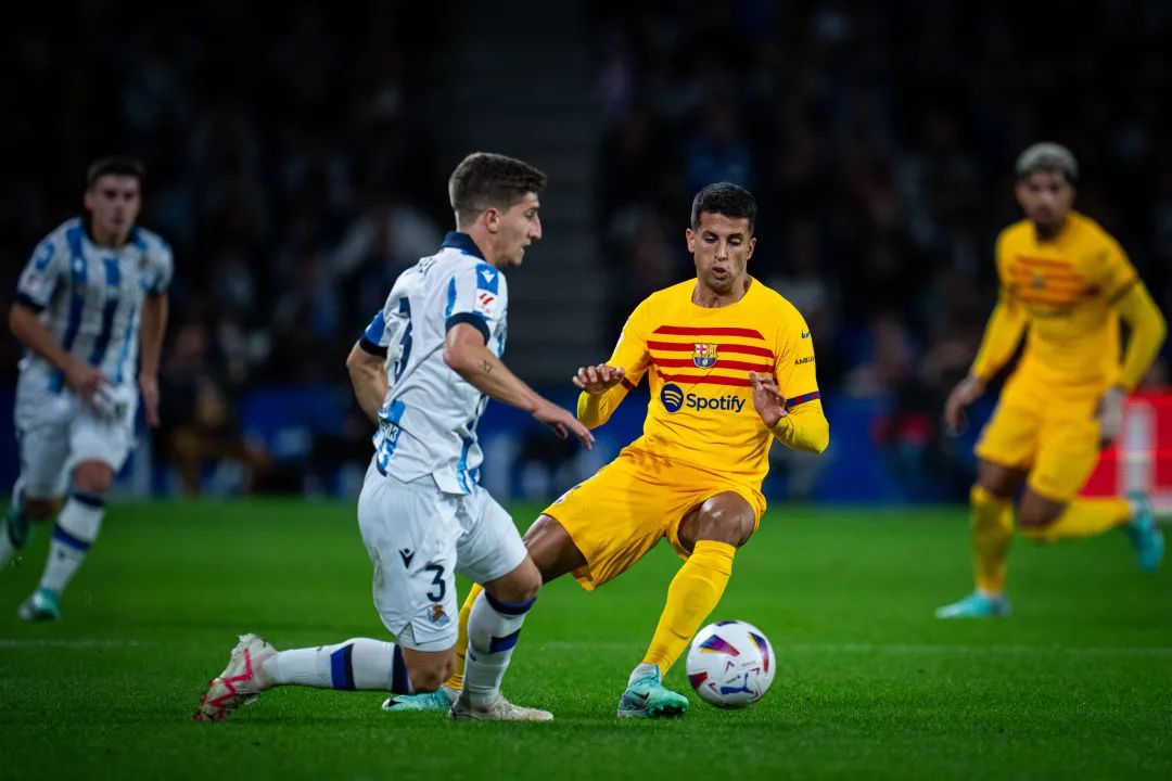 补时最后时分,阿劳霍头球破门!!!绝杀!巴萨1-0皇家社会,客场全取三分!