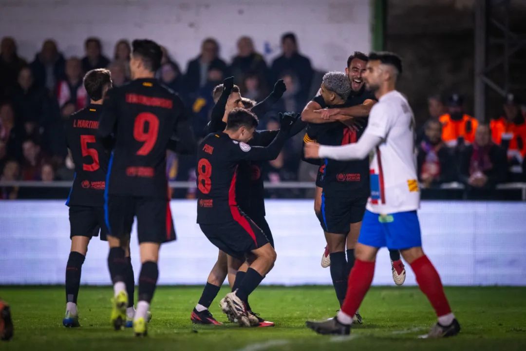 全场比赛结束,巴萨客场4-0大胜巴巴斯特罗,迎来2025开门红,成功晋级国王杯16强!