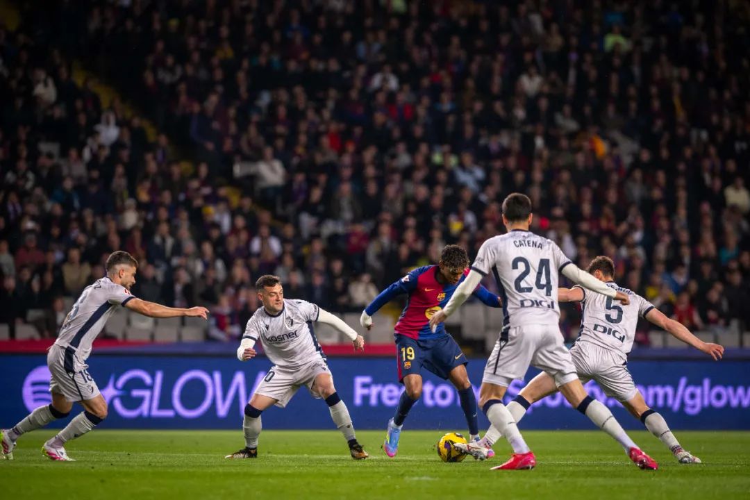 第14分钟,亚马尔传中,费兰单刀凌空打门,皮球被出击的门将挡出。⚽️第21分钟,奥尔莫造点并主罚,皮球被扑出。因对手犯规在先,奥尔莫重新罚点命中!巴萨2-0奥萨苏纳。第27分钟,奥尔莫因伤无法继续,由费尔明换下,希望奥尔莫没有大碍!第31分钟,亚马尔带球突破至禁区线起脚远射,皮球滑门而过。