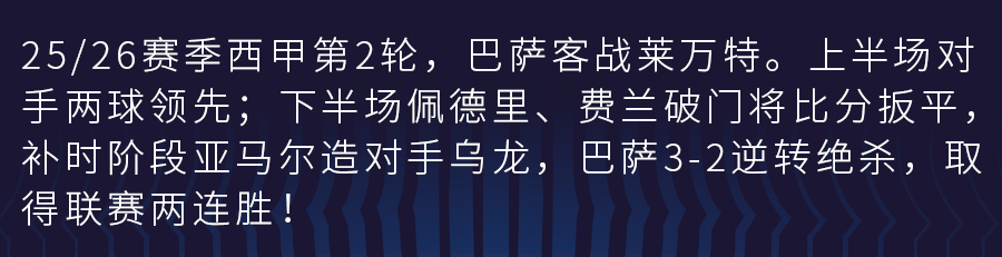 中场:17-卡萨多(46' 加维),11-拉菲尼亚,8-佩德里