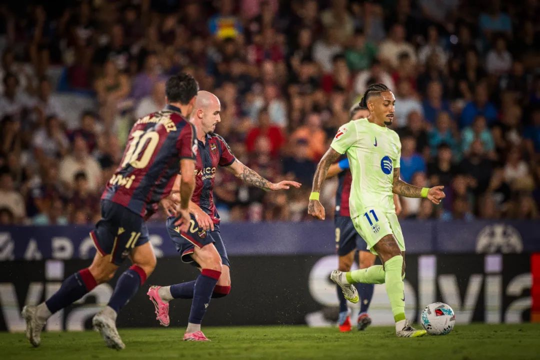 ⚽️第52分钟,拉菲尼亚角球助攻,费兰抢点垫射破门,扳平了!巴萨2-2莱万特。
