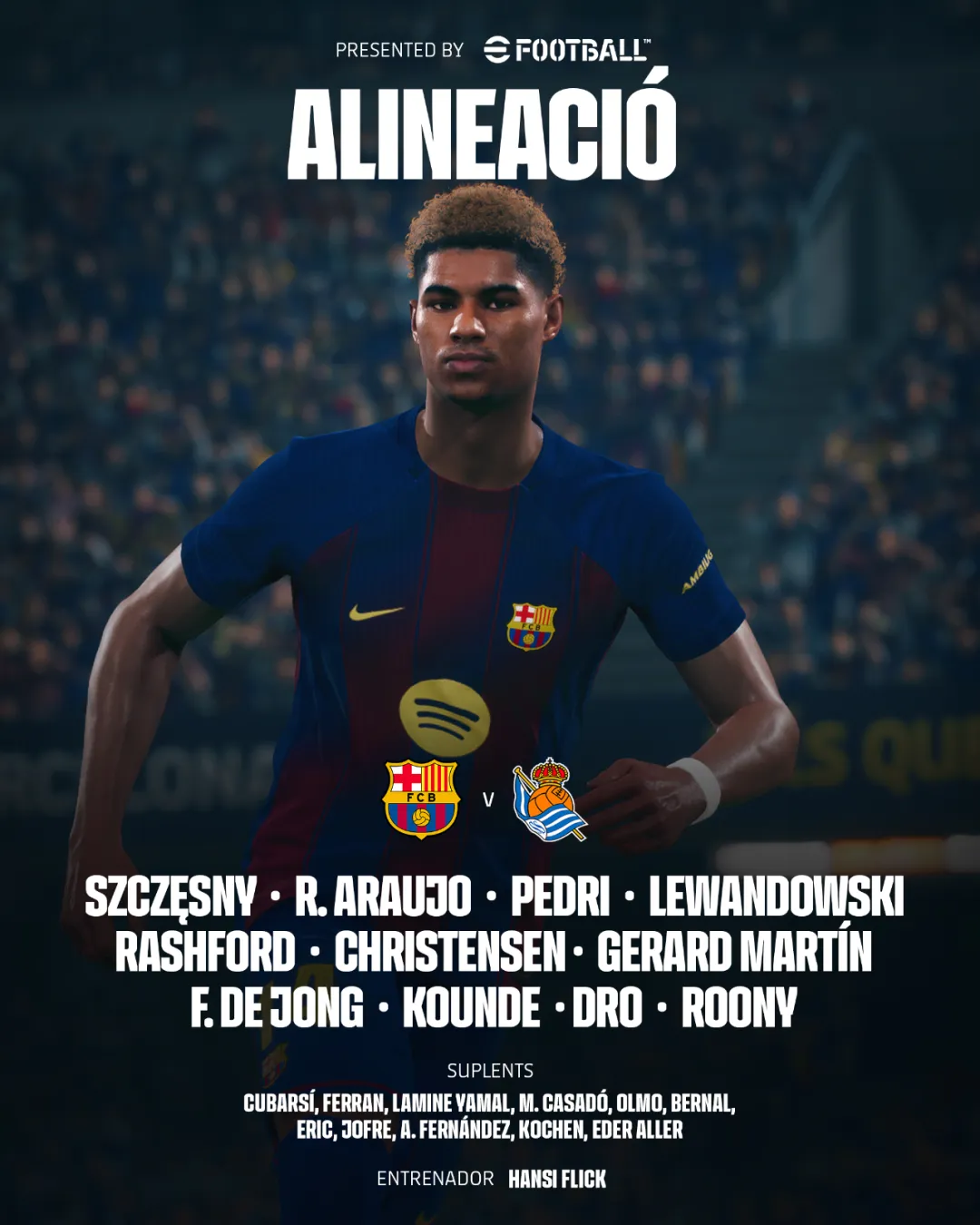 前锋:28-巴尔德吉(58' 亚马尔),9-莱万多夫斯基,14-拉什福德(78' 费兰)