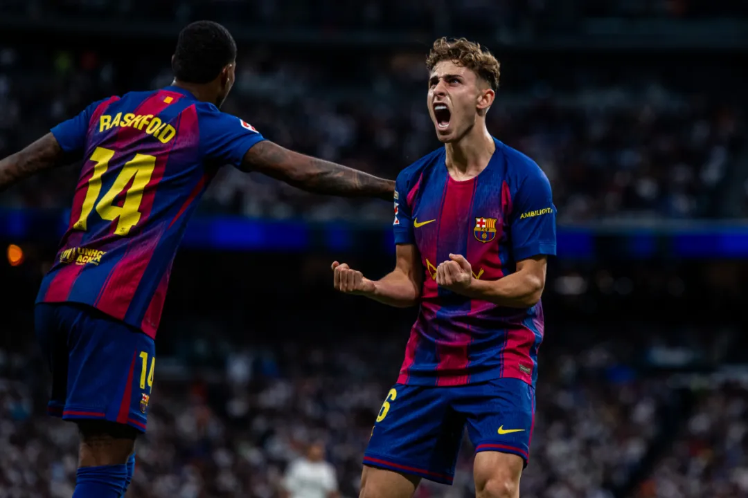 第38分钟,佩德里前场抢断,拉什福德传中,费尔明爆射破门,扳平了!