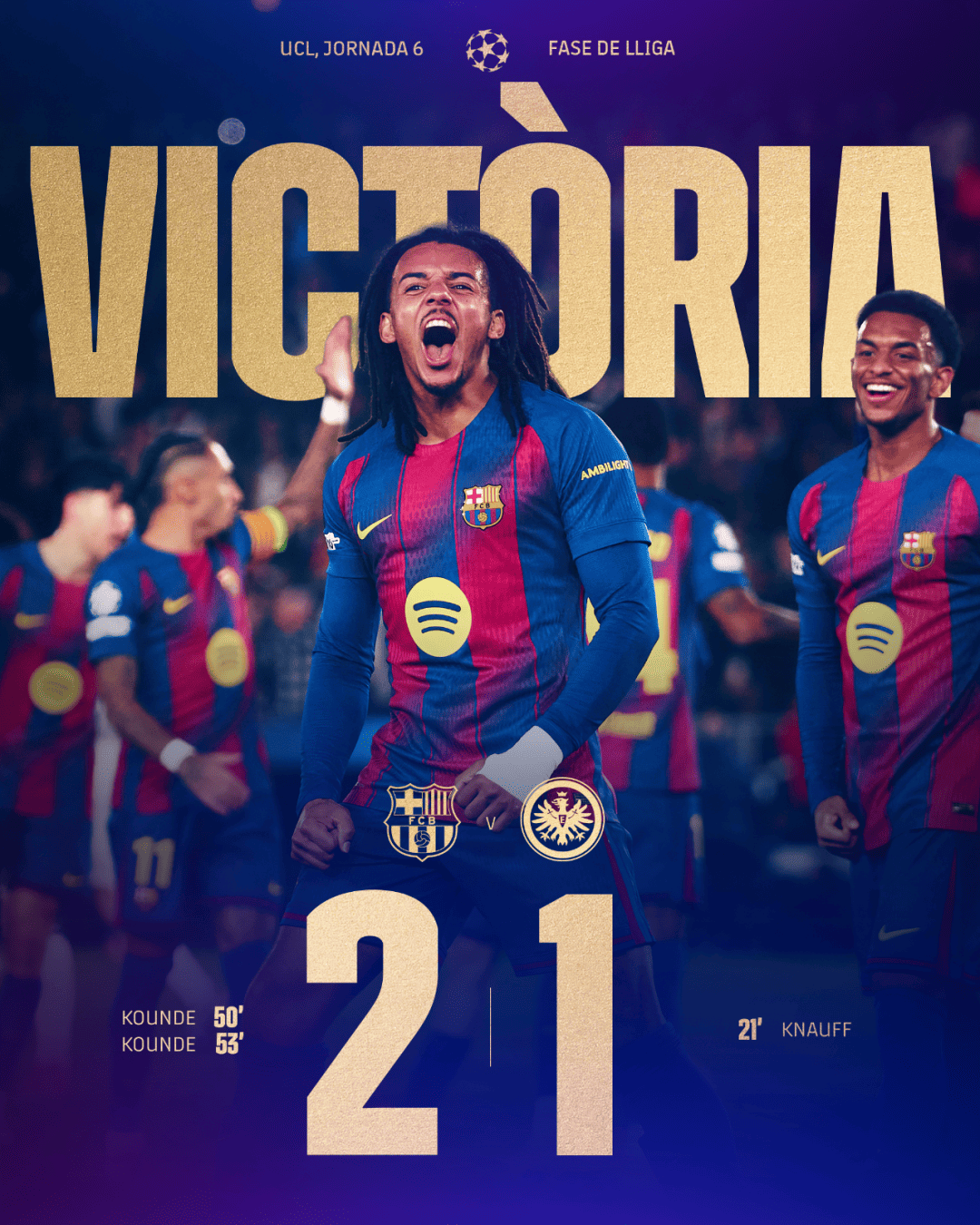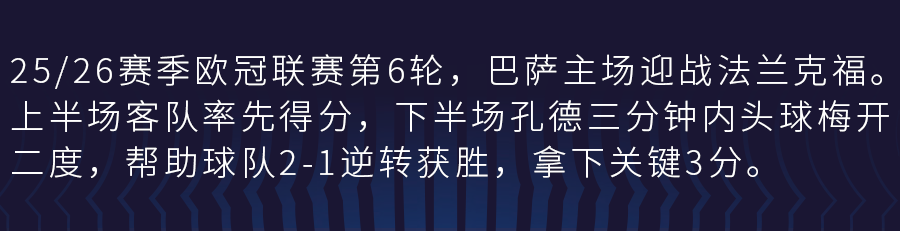 全场比赛结束,凭借孔德的头球双响,我们主场2-1逆转战胜法兰克福,拿下欧战关键三分!