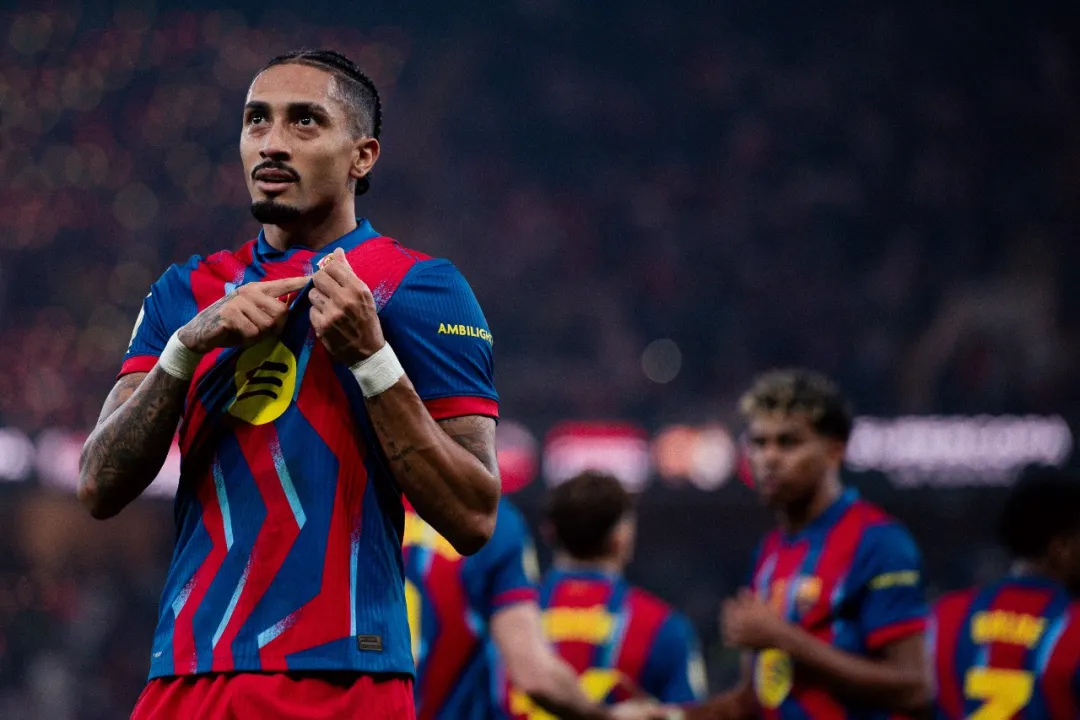 第27分钟,亚马尔下底传中被挡出,拉菲尼亚得球抽射被扑。