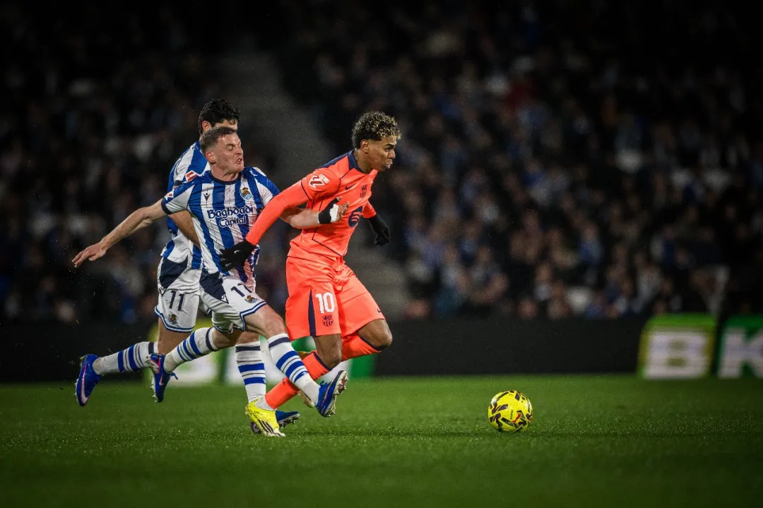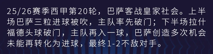全场比赛结束,巴萨客场1-2不敌皇家社会。