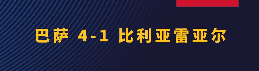 全场比赛结束,巴萨4-1击败比利亚雷亚尔,主场三分到手。