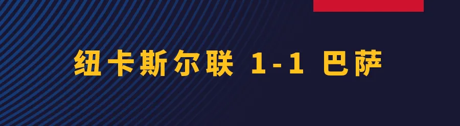 全场比赛结束,巴萨客场1-1绝平纽卡斯尔联。